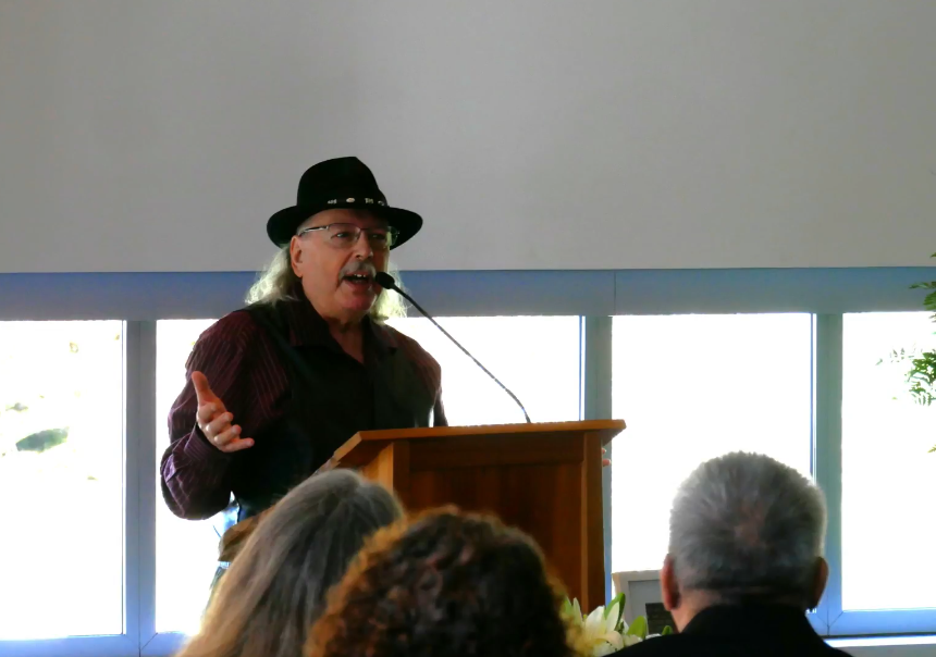 On March 24th, 2024, there was a celebration of life for my brother at Mountain View Cemetery’s Celebration Hall. Adam Rohrlick, a close friend of Tom, helped some of Tom’s musician friends create the event. (Without Adam, especially, this event could not have happened as I was quarantined with COVID and also grief.) Tom Keenlyside gave the speech, which we would have called the eulogy if we’d called the event a funeral. It was a beautiful and funny speech, and I will post it below for you to read. Norm Fisher, Andreas Schuld, Ian Putz, Michael Creber and Dylan Cramer, along with Tom Keenlyside on sax, all filled the room with music, mostly playing selections from Mr. Toad’s Wild Ride.